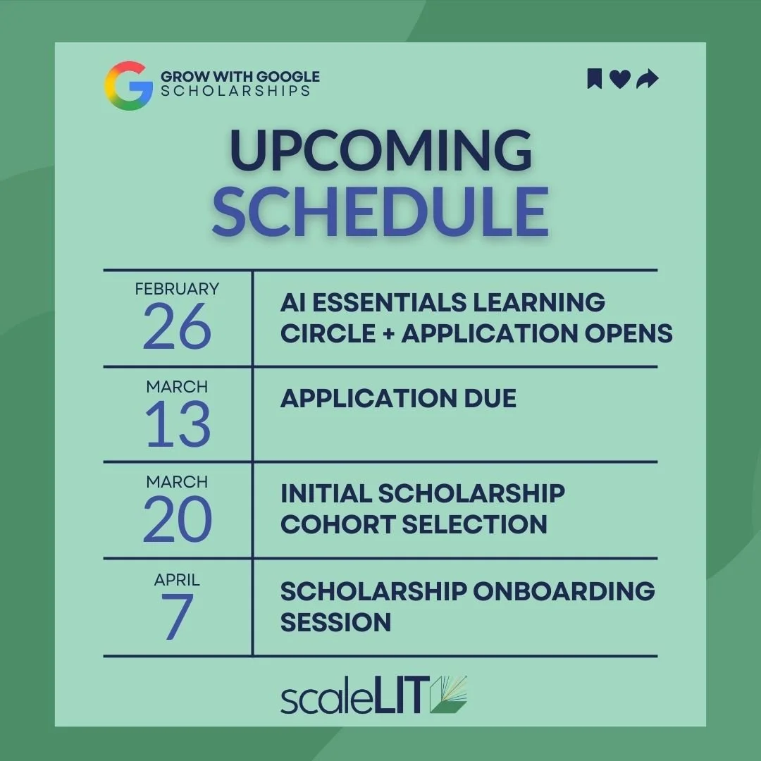 As a Grow with Google partner, scaleLIT is launching a structured AI scholarship initiative across our network.